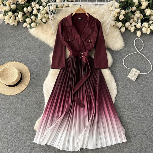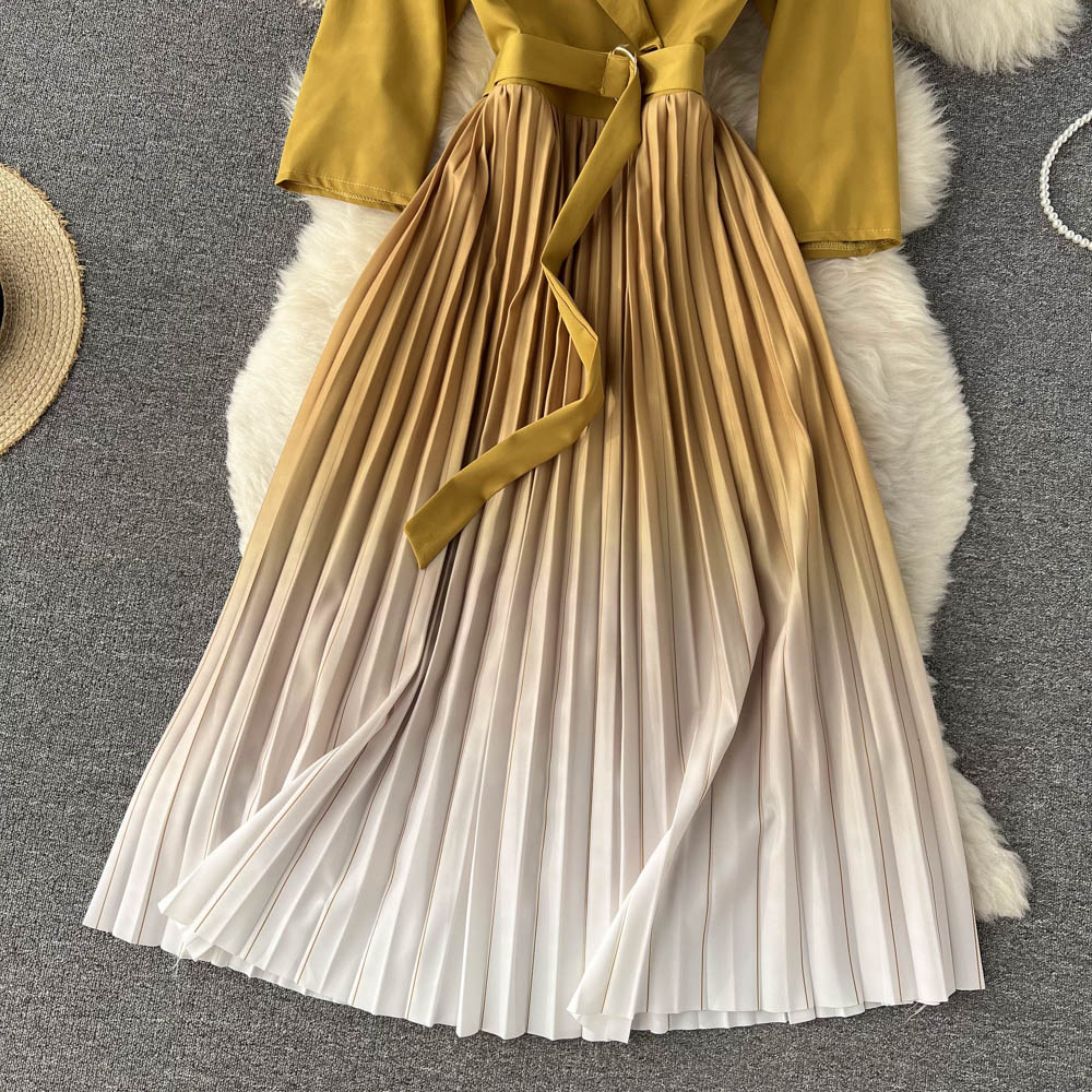 A classic and elegant long-sleeved dress always looks great. The flared silhouette makes it easy to move around while the wide lapel collar adds a beautiful finishing touch. A lovely gradation color adds a pop of color to any look. The lightweight fabric is soft and form-fitting for a flattering fit.