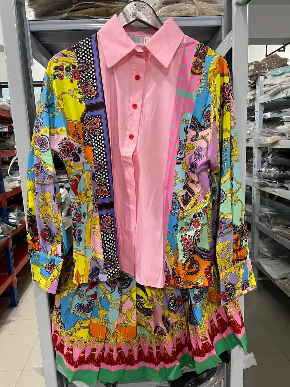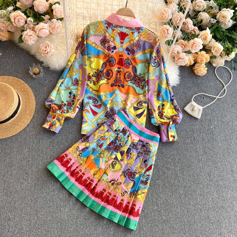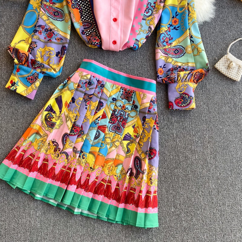 Conjuntos de falda plisada y camisa con estampado europeo clásico