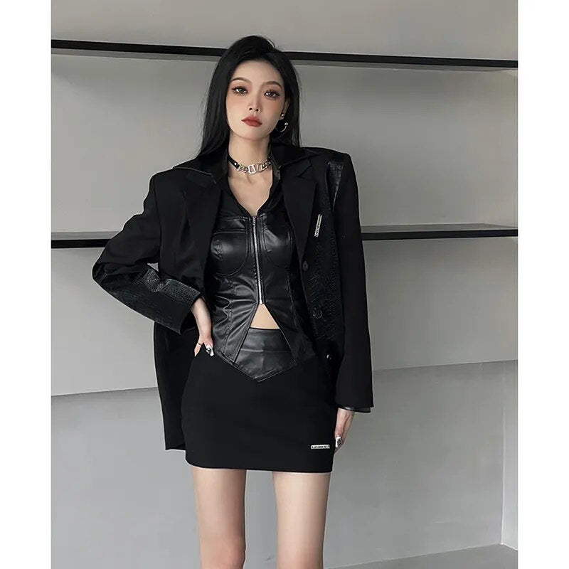 Look fabulous in this skirt set. The set consists of a solid skirt made of polyester fabric with a hollow-out design and a zipper for closure. Look stylish and feel comfortable in this versatile skirt set.