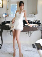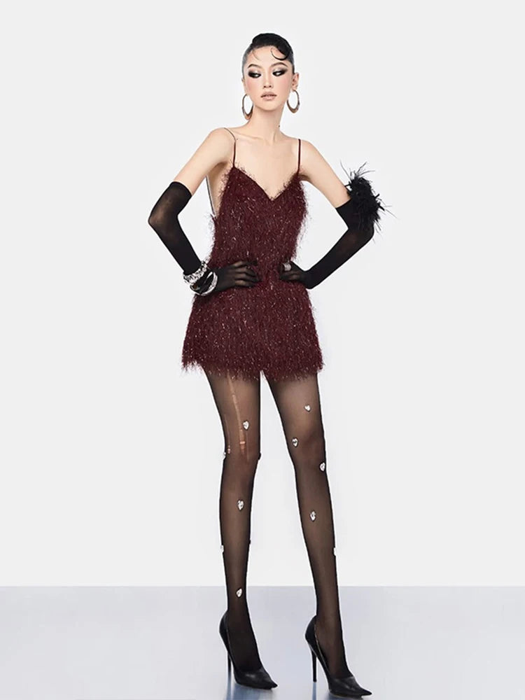 Make a bold statement with the Twilight Mist Mini Dress. Crafted from a sleek blend of polyester and spandex, it offers a comfortable stretch that moves with you. The sleeveless, solid design highlights your confidence, perfect for nights when you want all eyes on you. Embrace the daring allure of this mini dress and own the moment.