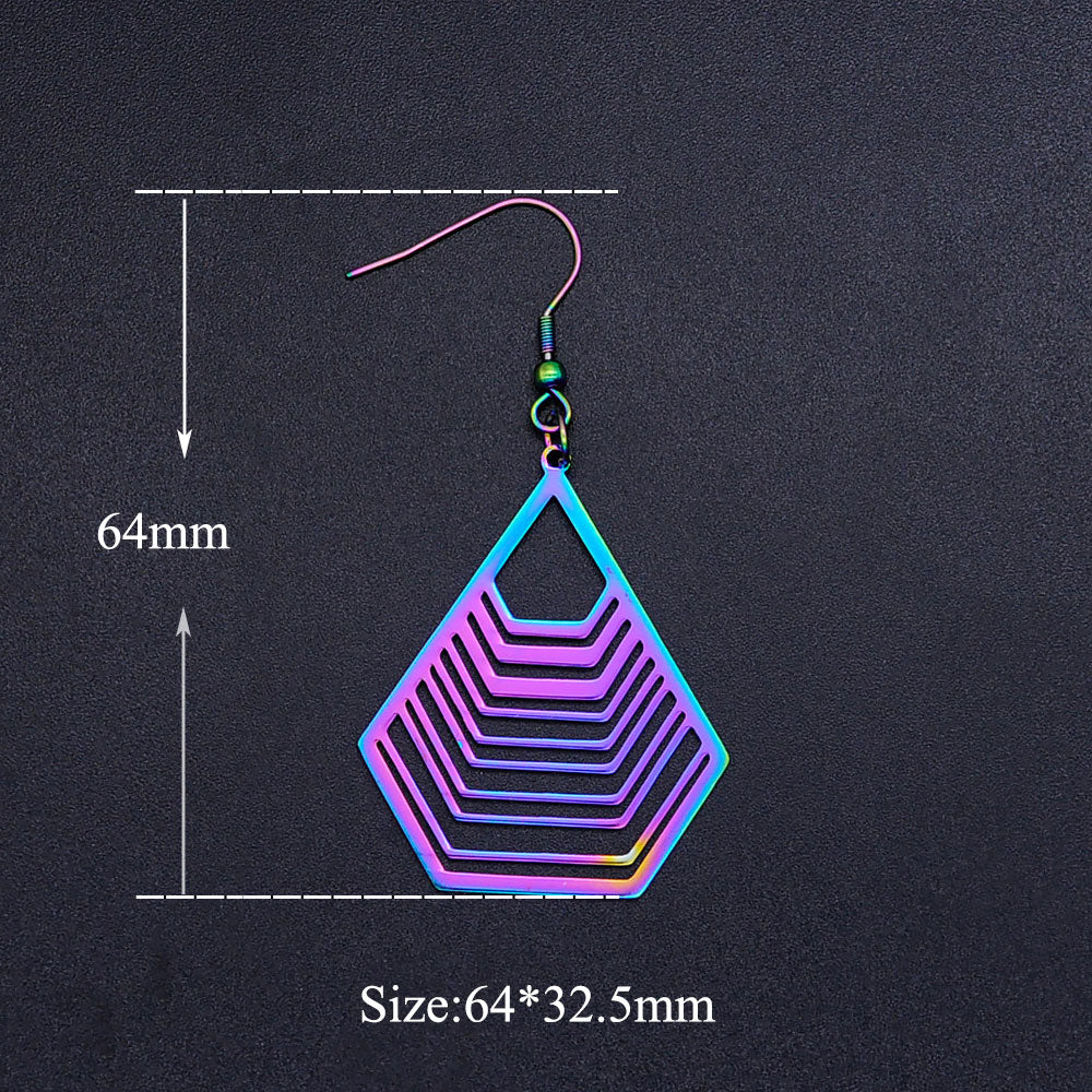 <transcy>Pendientes de mujer de forma geométrica de acero inoxidable de color arcoíris únicos</transcy>