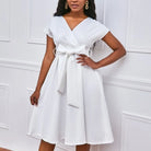 Embrace the night with the Velvet Moon Glow Midi Dress, crafted from a luxurious blend of polyester and cotton for comfort and style. Its daring V-neckline adds an alluring touch, perfect for unforgettable evenings. This dress effortlessly combines softness with a radiant glow, making you stand out with confidence and elegance.