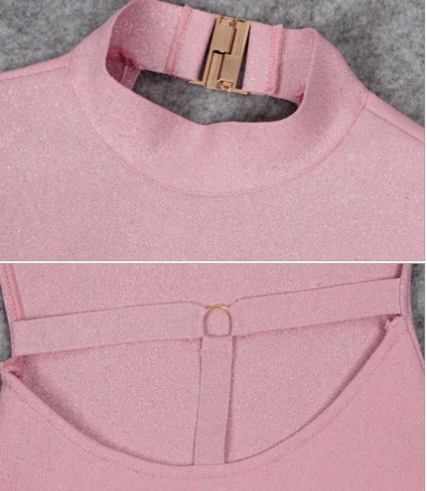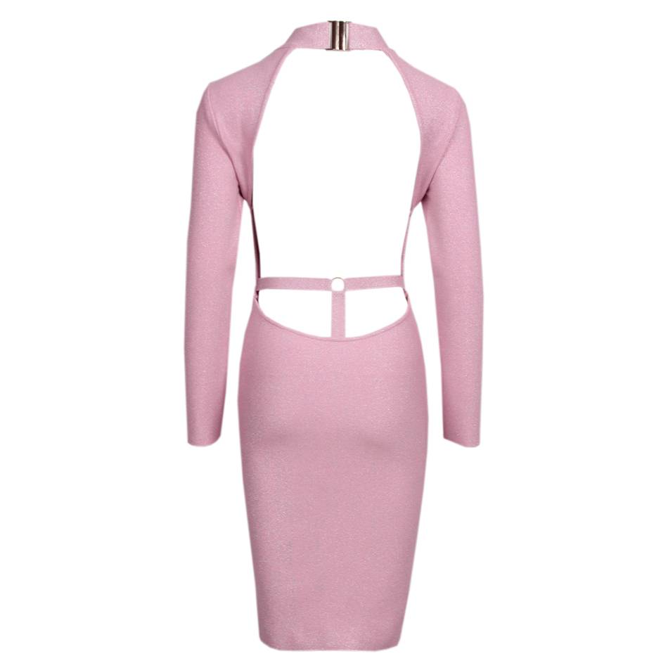 Minivestido ahuecado de color sólido con decoración de purpurina, cuello en forma de O y material de poliéster spandex