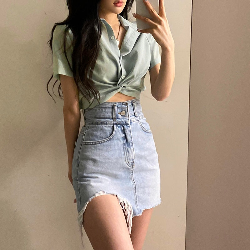 Your solid denim mini skirt is perfect for any day. It's the perfect skirt for all occasions, whether you're headed to the grocery store or going out for a night on the town. This is a skirt that will last you for years to come.