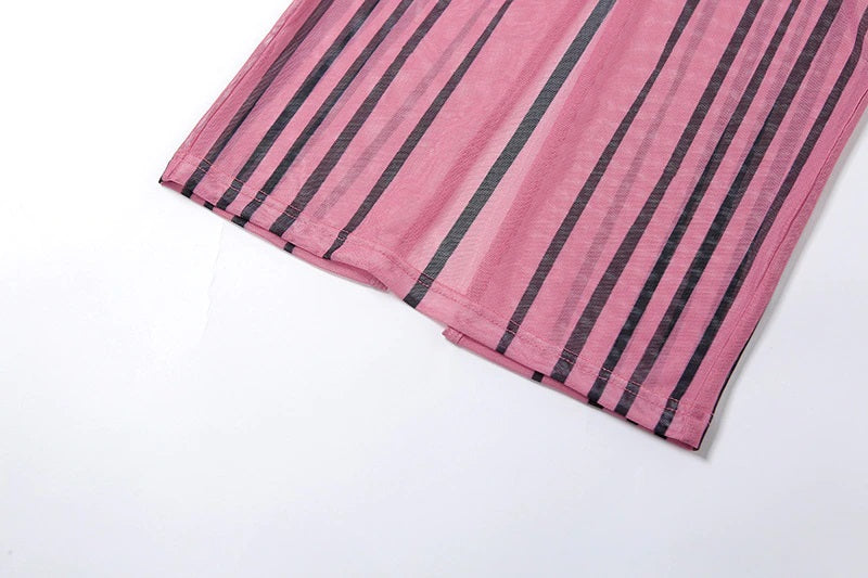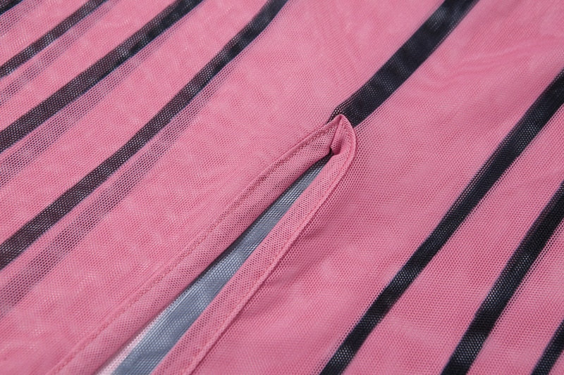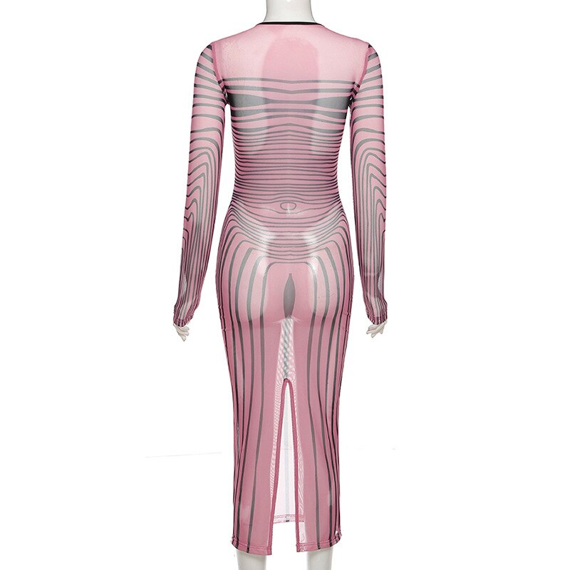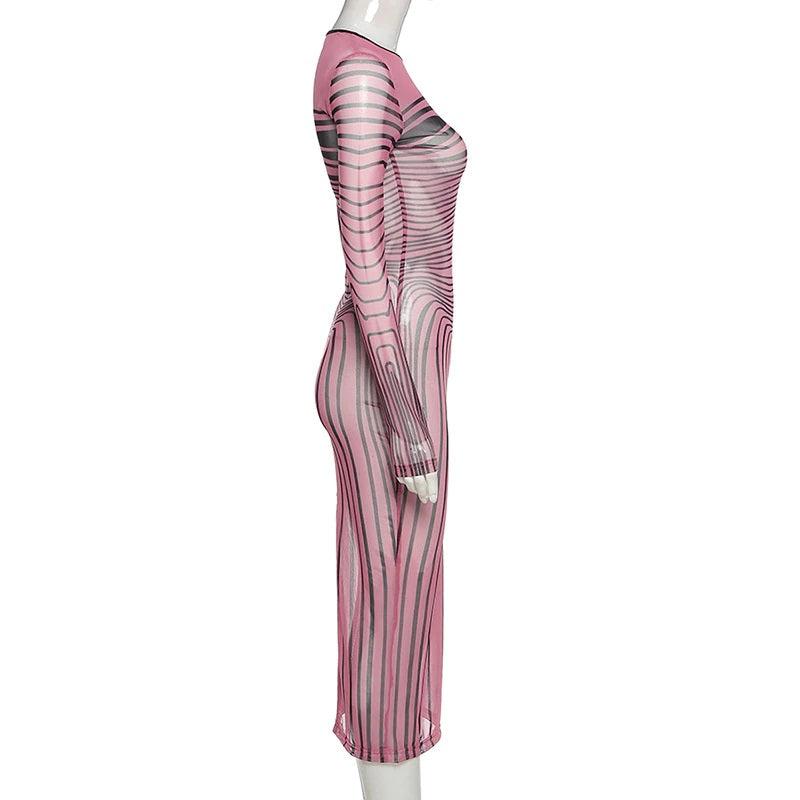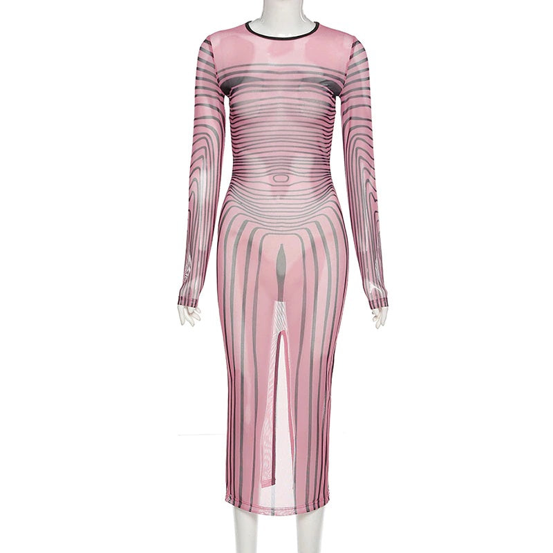 Vestido largo entallado con silueta de vaina, cuello en forma de O y material de malla