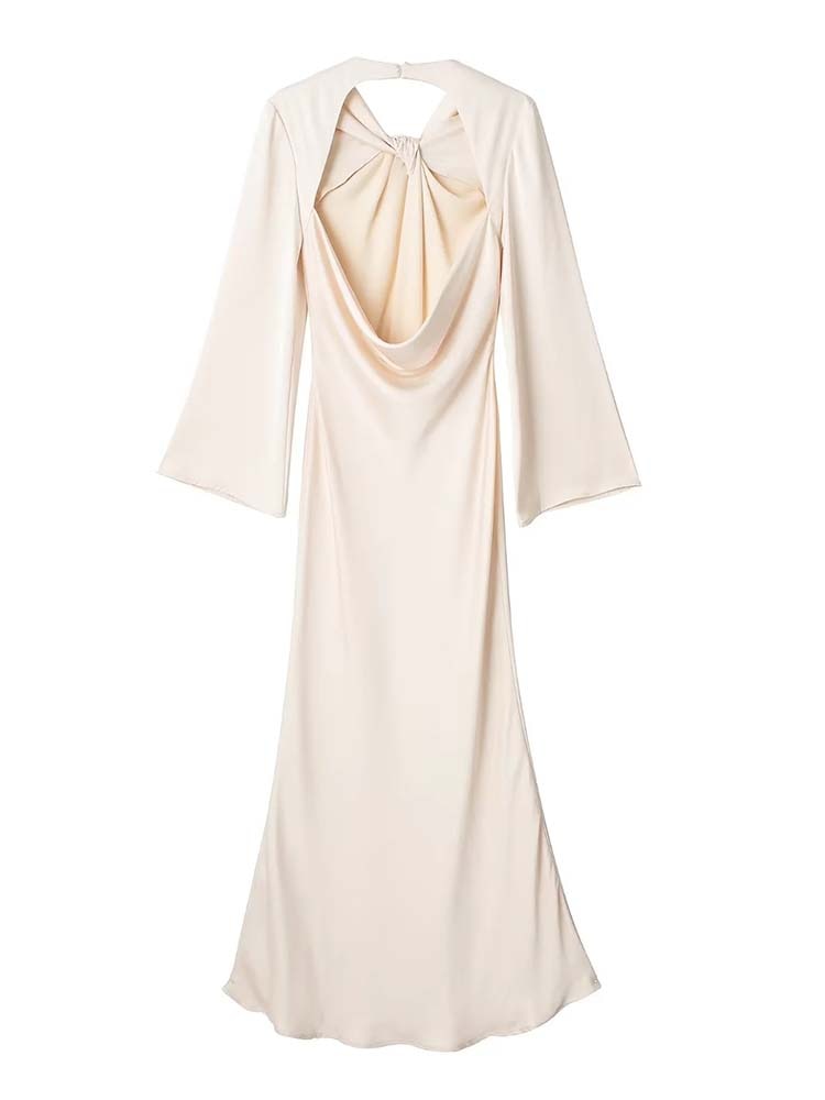 This feminine maxi dress is a flattering style that is a must-have for any stylish wardrobe. The beautiful color makes her stand out in any crowd. It's a stylish A-line design that flatters all body types. The long sleeves ensure she stays protected from the cold.