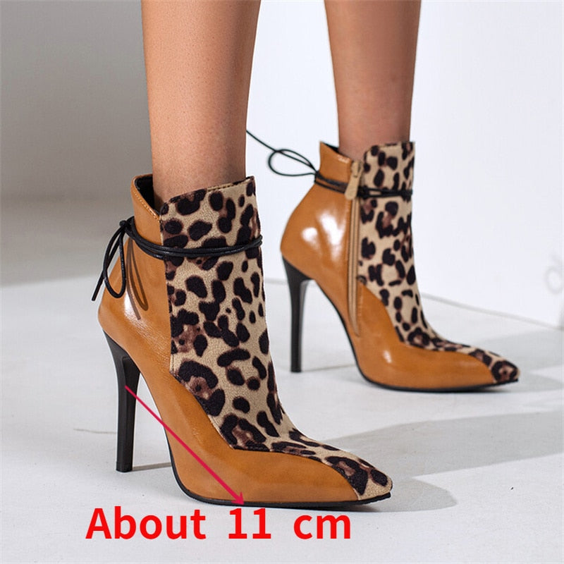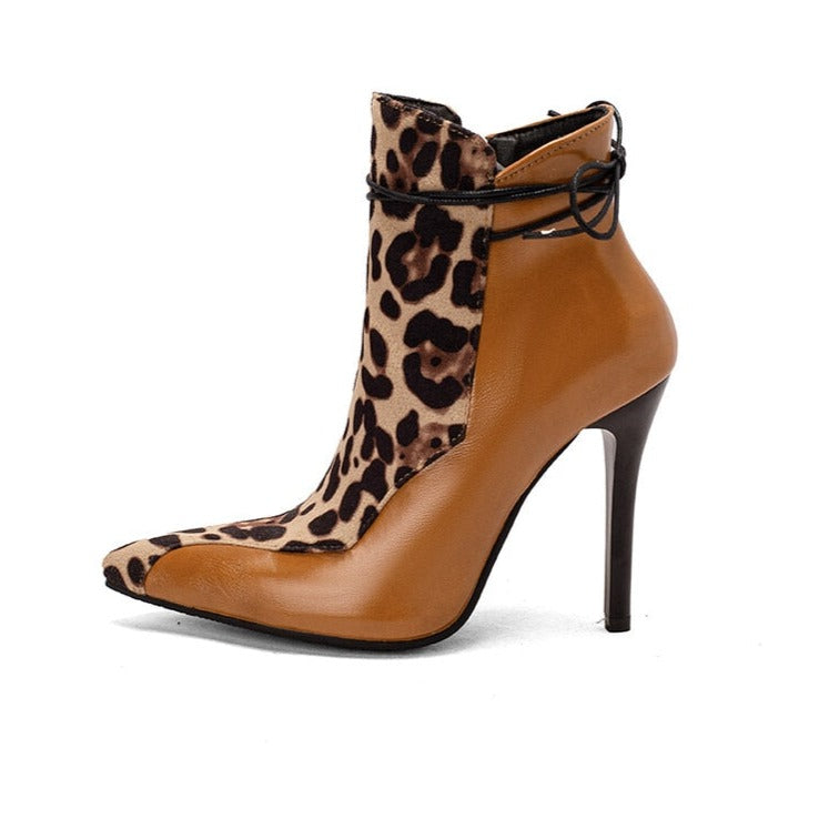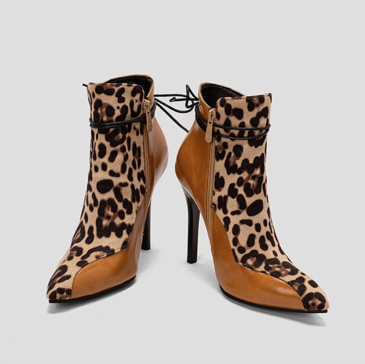 These fashionable ankle boots will be a go-to style choice for any casual look. The edgy leopard pattern looks great with a variety of outfits. Pair with jeans for a casual and feminine daytime look. The rugged construction features a pointed toe and lightweight PU upper for comfort and durability.