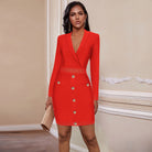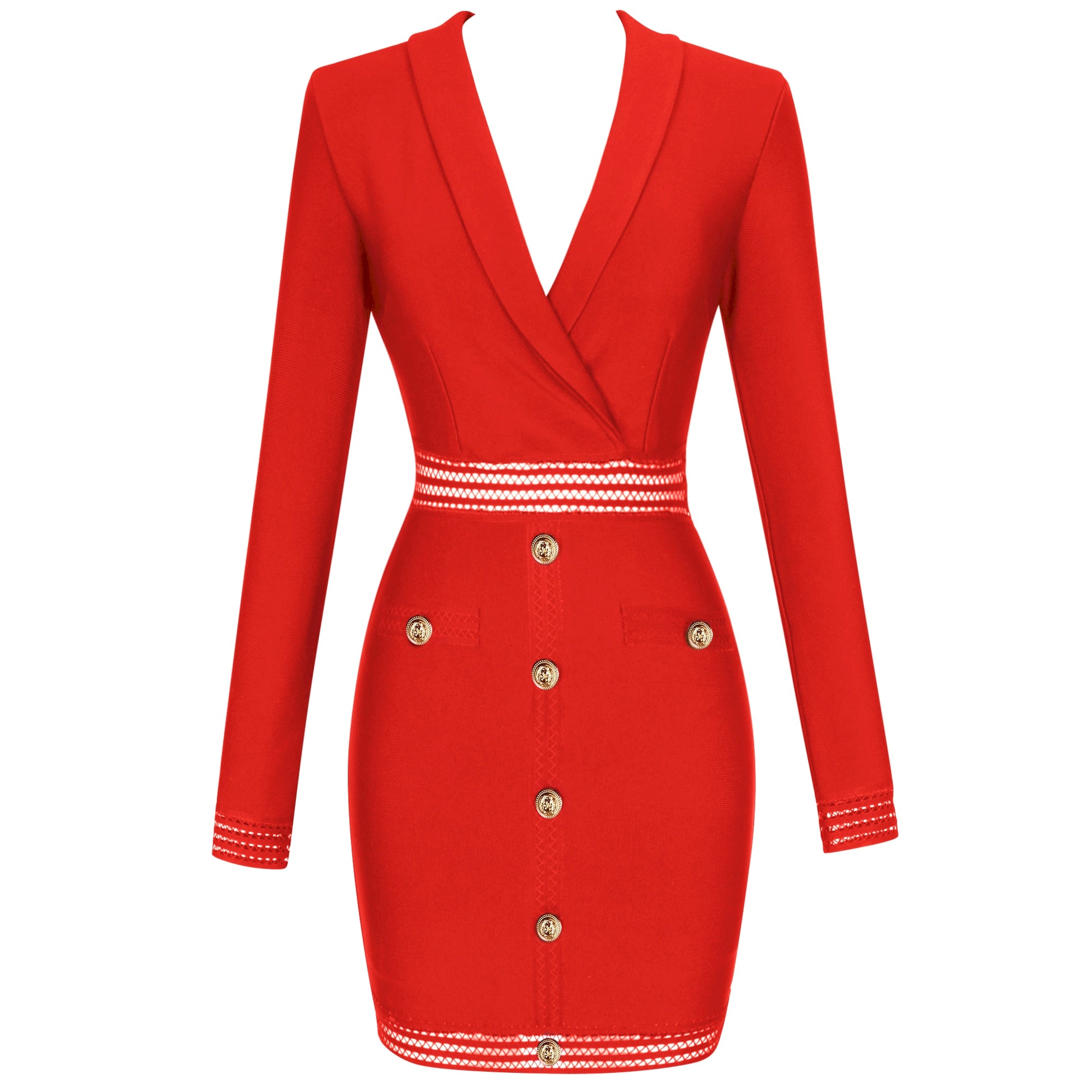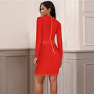 Minivestido de manga larga con cuello en V con decoración de botones, cierre de cremallera y material de poliéster